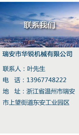 瑞安市華銳機(jī)械有限公司的誠(chéng)信、實(shí)力和產(chǎn)品質(zhì)量獲得業(yè)界的認(rèn)可。歡迎各界朋友蒞臨參觀(guān)、指導(dǎo)和業(yè)務(wù)洽談......【查看詳情】