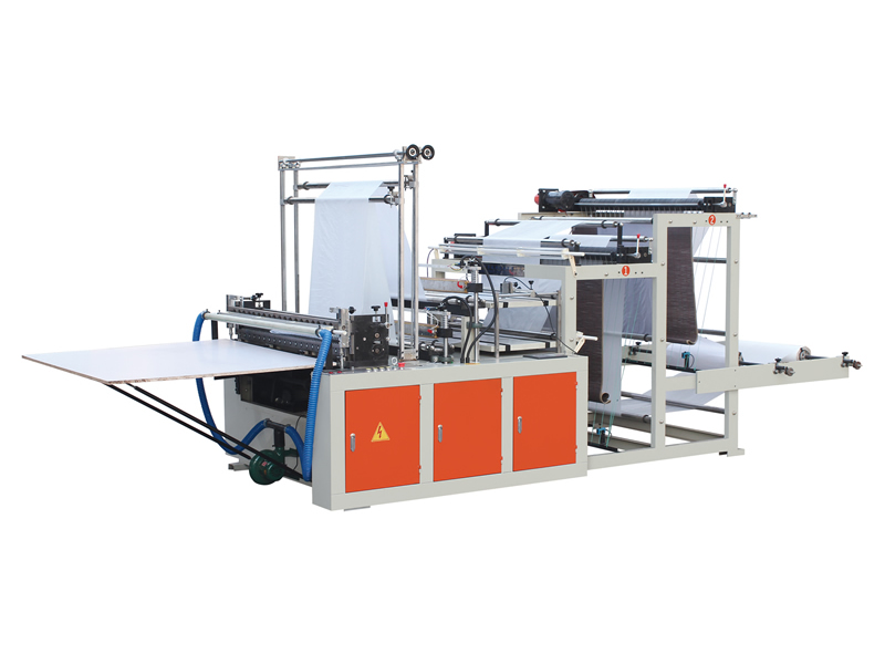 Heat-sealing and hot-cutting bag making machine needs to heat seal one knife first, and then hot cut off, the cut edge is heat seal, the prepared vest bag is more secure, generally used in supermarkets are heat seal and hot-cutting vest bag. On the other hand, the hot sealing and cold cutting bag making machine is to heat seal a knife first, and then cut off with a cold knife. The edge after cutting is open. It can not only be used in the production of vest bags, but also in the production of flat pockets by changing the double-line sealing knife into single-line sealing knife in the bag making machine, because its cutting edge is open type.